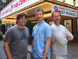 Robert Lopez (Writer), Matt Stone (Writer) and Trey Parker (Writer & Director) of The Book of Mormon. Photo by Joan Marcus – 075_bigissuenorth