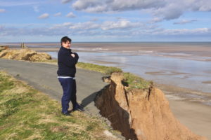 Annette Richards on the collapsing road outside her house at Tunstall_bigissuenorth