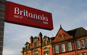 A sign sits outside a Britannia Building Society branch, part of the Co-Operative Bank Plc, in Wigan, U.K., on Thursday, Nov. 24, 2011. The Co-Operative Bank has expanded access to banking services at its Britannia branch network, adding 245 sites where customers can use services such as making balance inquiries and paying in cheques, the U.K. bank said in an e-mailed statement. Photographer: Paul Thomas/Bloomberg via Getty Images