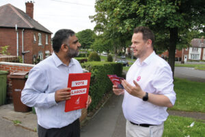 Labour candidate Simon Lightwood (right) briefs a volunteer, Mohammed Shahzad, on the campaign trail 2