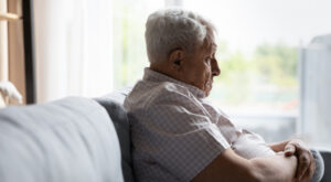 Elderly man looking glum